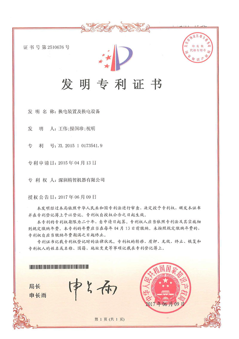 • 換電設(shè)備-專利證書(shū)