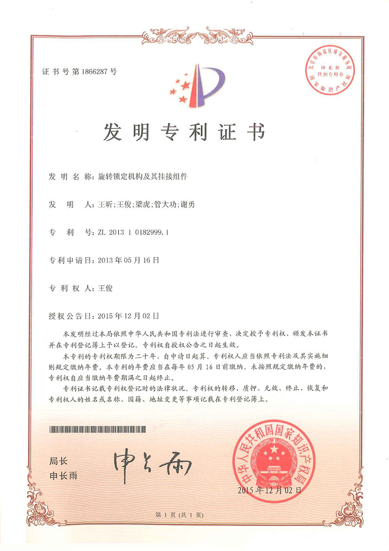 • 旋轉(zhuǎn)鎖定機(jī)構(gòu)-專利證書(shū)